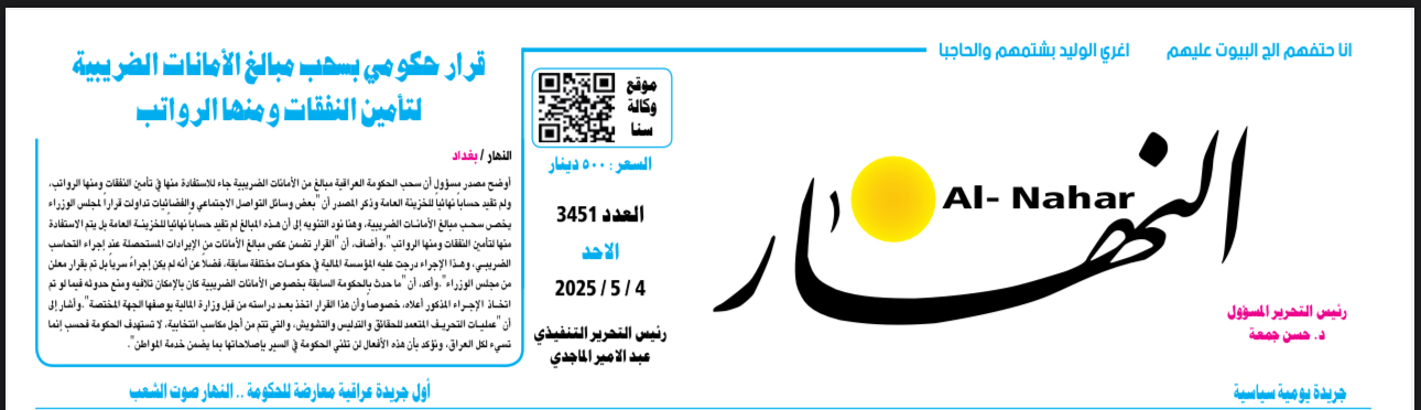 تصفح عدد اليوم الثلاثاء من جريدة النهار 6 أيار 2025